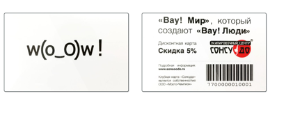 · Дисконтная карта – бессрочная пластиковая карта, дающая скидку 5 % при покупке товаров, обладающая уникальным 13-значным номером(штрих-кодом), который используется для идентификации Участника программы лояльности. Выдается клиенту при совершении покупки в розничном магазине от 3,000 рублей и заполнении бумажной анкеты.